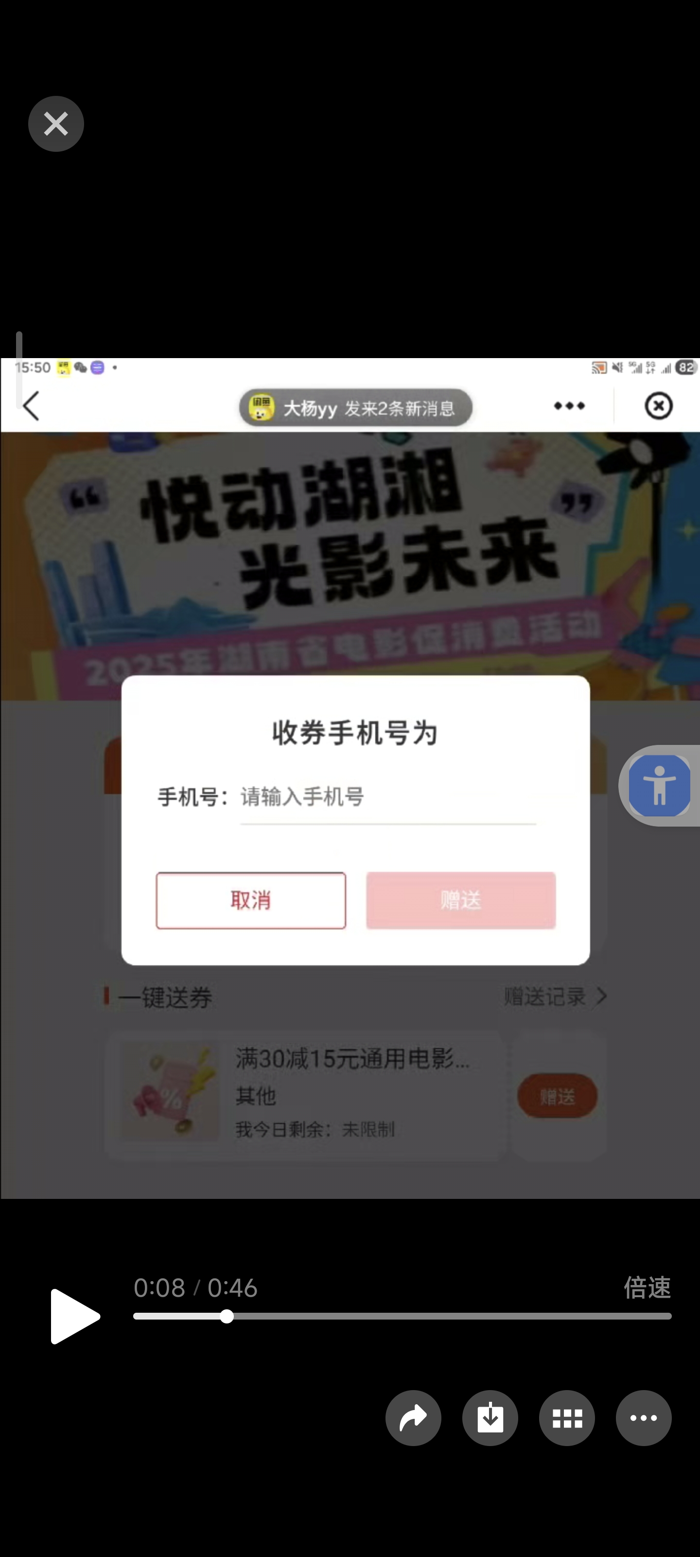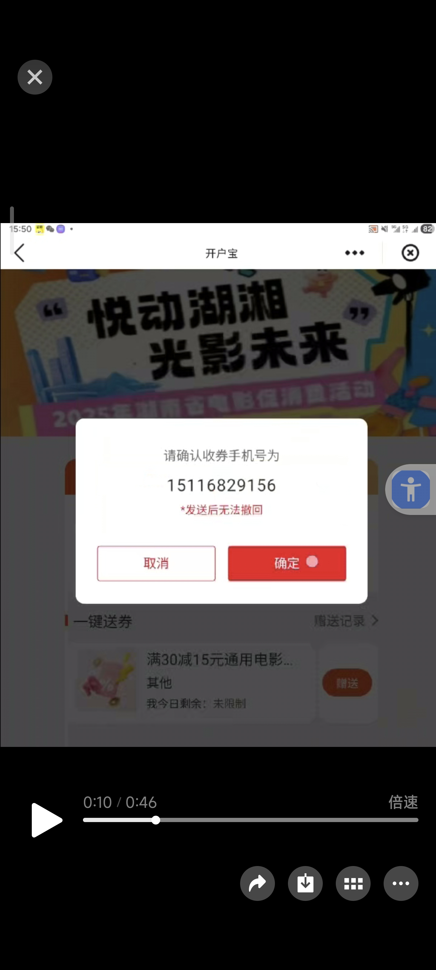 6.每个手机号都可以赠送八张券,因此每个手机号都要点八次赠送按钮然后输入手机号进行赠送