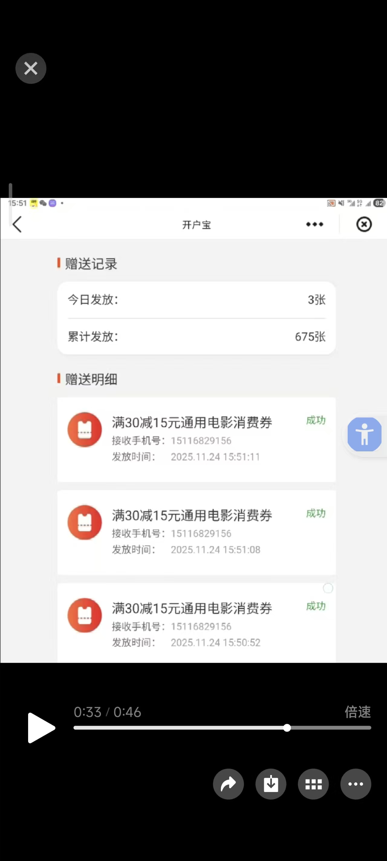 8.所有手机号赠送完了以后,点击查看赠送记录,查看是否赠送成功,校验一个手机号需要有八次赠送记录